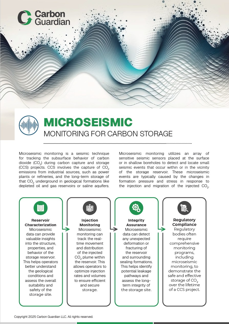 Process and interpret Monitoring Data: The Carbon Guardian system provides in-build event detection and localization processes and visualizes the events in the context of the geological model of the storage site. If increased and unexpected seimic activity is recorded, we offer further in depth analysis and interpretation to identify root causes and define a mitigation strategy supporting any potential reviews by authorities or communications with public. Our geomechanical and microseismic specialists will work hand-in-hand with your team in such an analysis.